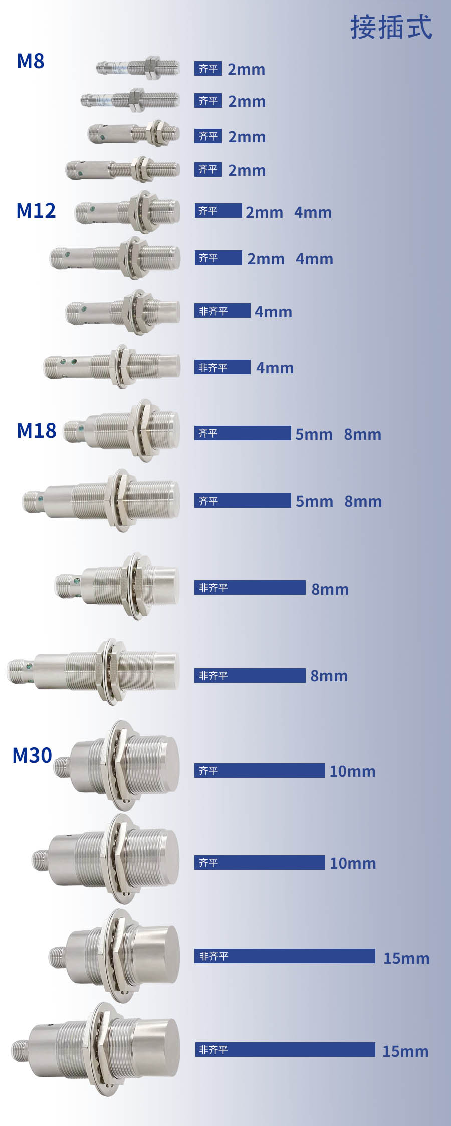 KRONZ全金属系列电感式传感器,采用一体化不锈钢外壳设计,具备出色的抗机械力、抗撞击、耐压抗振及防油渗入性能。可快速无触点检测各类金属物体,性能稳定,有接插和密封电缆出线两种连接方式。