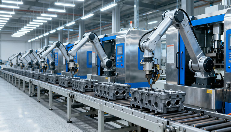 汽车零部件钻孔与研磨时需大量冷却液润滑降温、冲走碎屑,导致冷却液易飞溅。全金属M18系列电感式传感器可检测CNC内是否有待加工缸体,能在干冰频繁清洁环境中正常运行,且例行维护便捷,可最大限度延长生产线开机时间。