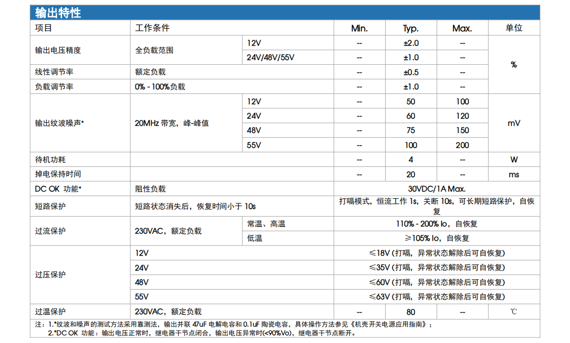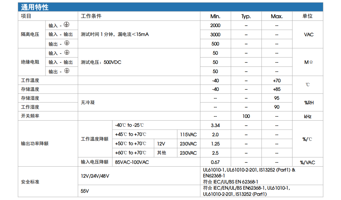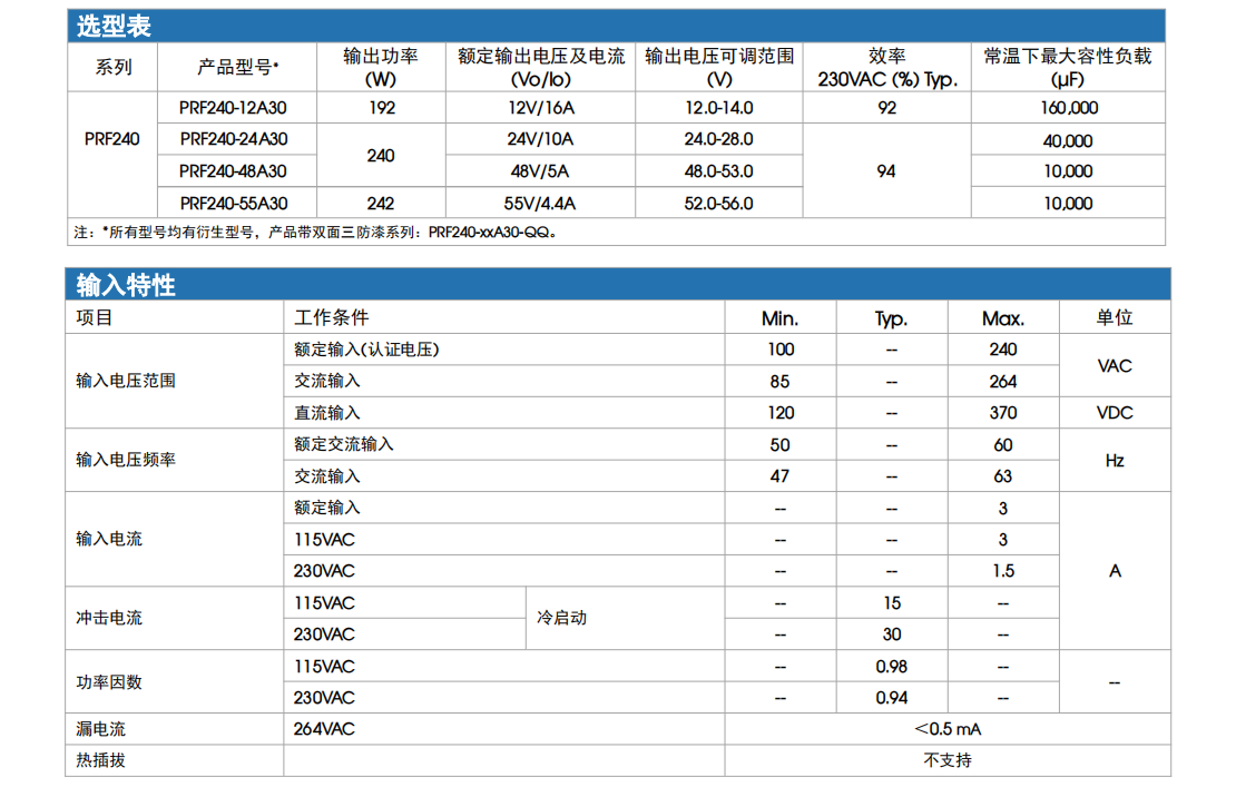 - 输入电压范围:85 - 264VAC/120 - 370DC