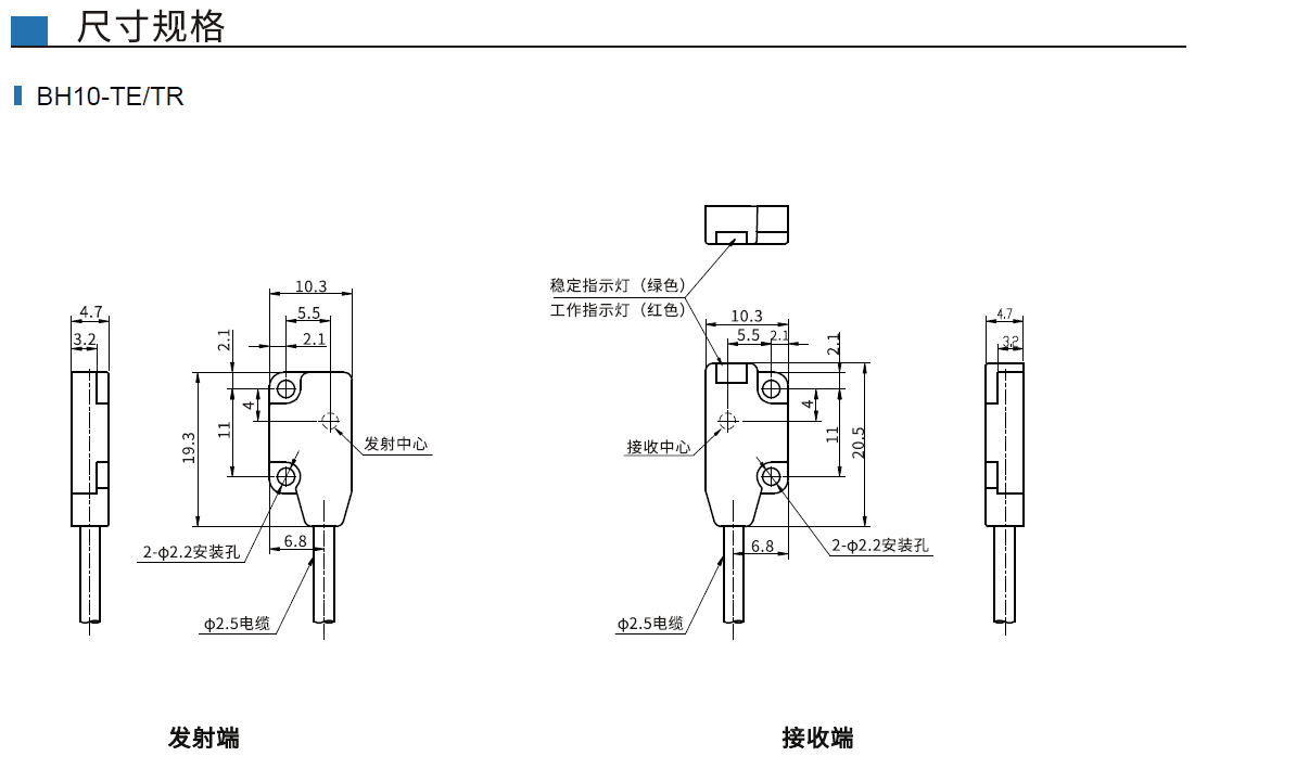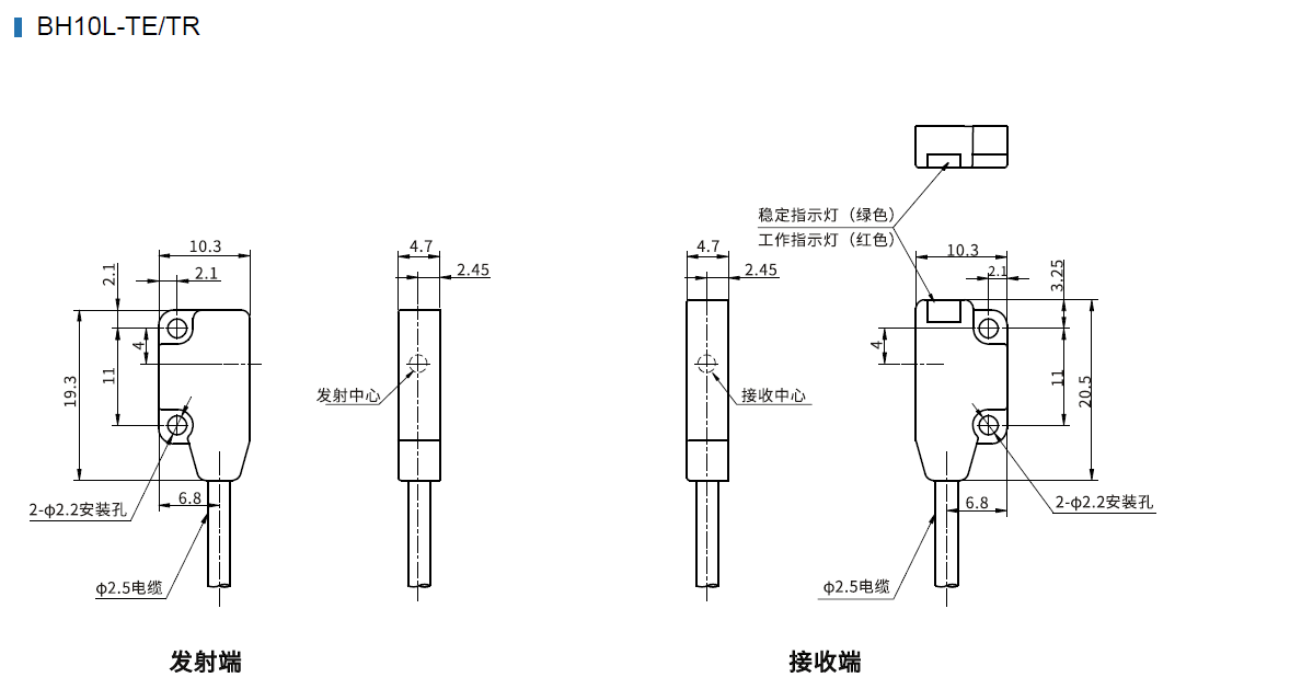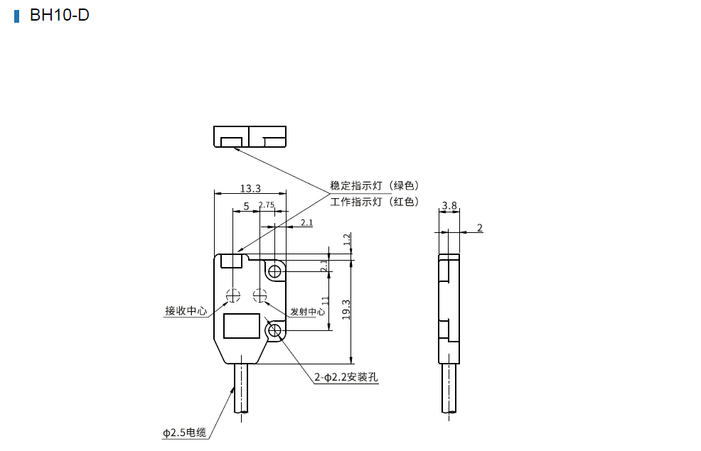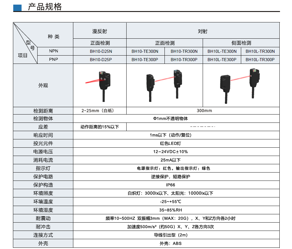 - 检测距离:漫反射2-25mm(白纸)/对射式300mm
