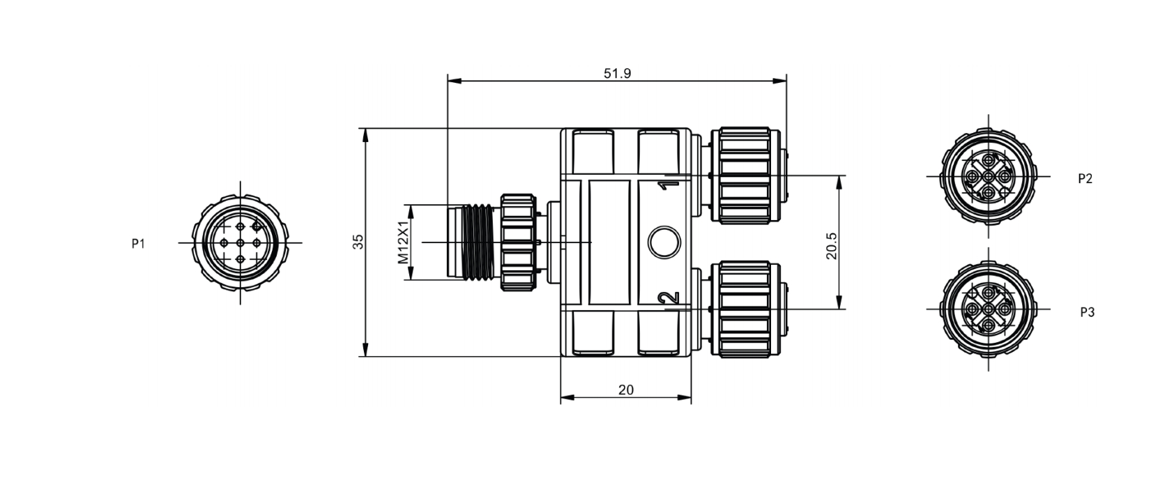 - 类型:针,M12x1,孔 x2,M12x1, 标准型