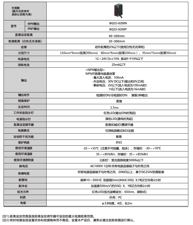 - BGS 功能的完美应用, 即使在异色工件流通的生产线上进行换产时, 也无需调节检测距离;